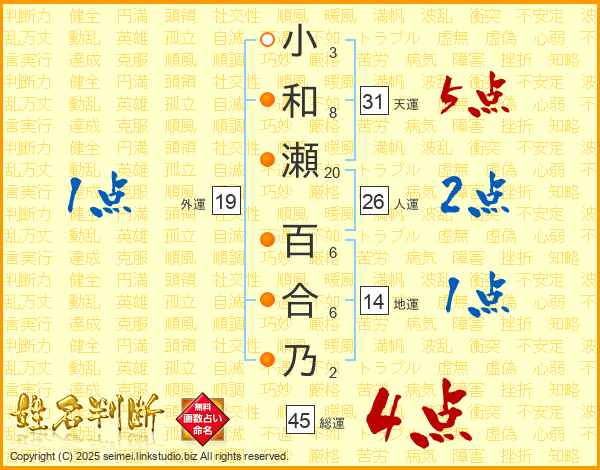小和瀬百合乃さんの総運は45画の4点!
