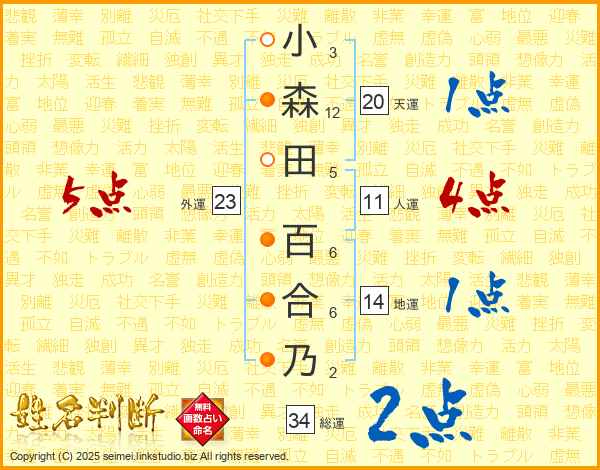 小森田百合乃さんの総運は34画の2点!
