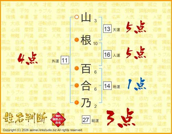 山(3画)根(10画) 百(6画)合(6画)乃(2画)