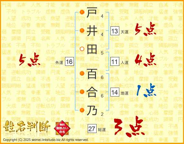 戸(4画)井(4画)田(5画) 百(6画)合(6画)乃(2画)