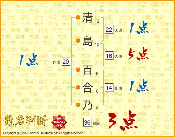 清(12画)島(10画) 百(6画)合(6画)乃(2画)