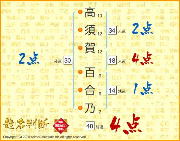 高須賀百合乃さんの総運は48画の4点!