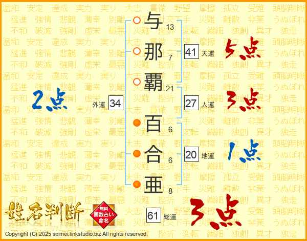 与那覇百合亜さんの天運は41画の5点!