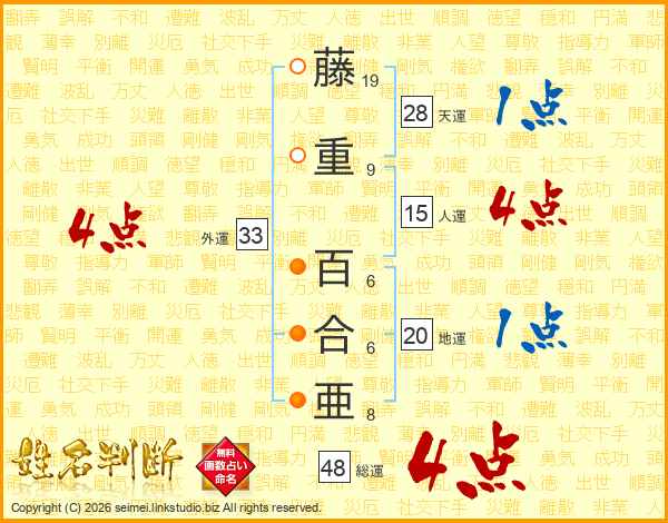 藤重百合亜さんの外運は33画の4点!