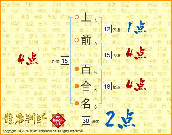 上(3画)前(9画) 百(6画)合(6画)名(6画)