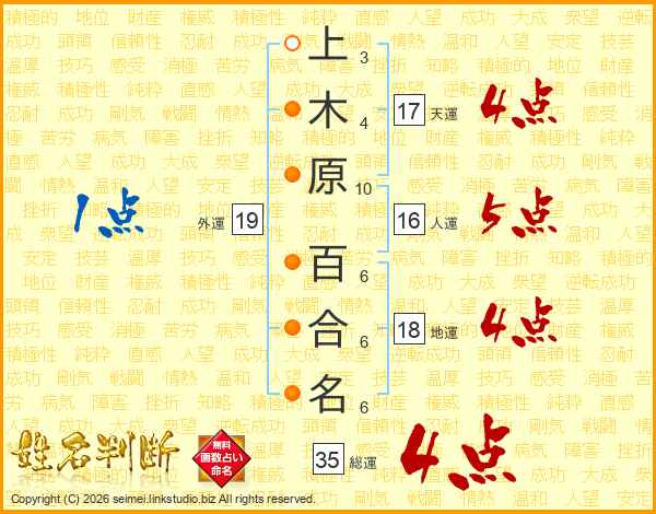 上木原百合名さんの総運は35画の4点!