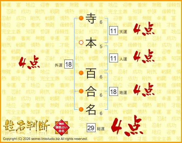 寺(6画)本(5画) 百(6画)合(6画)名(6画)