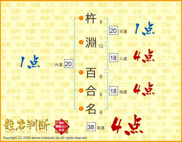 杵(8画)淵(12画) 百(6画)合(6画)名(6画)