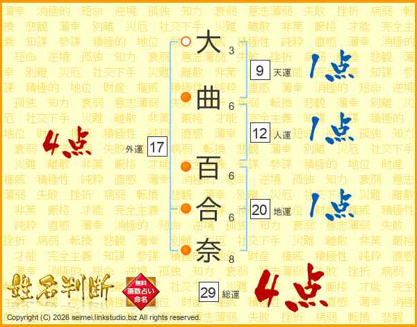 大曲百合奈さんの総運は29画の4点!
