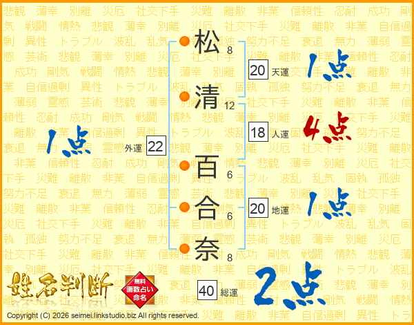 松(8画)清(12画) 百(6画)合(6画)奈(8画)
