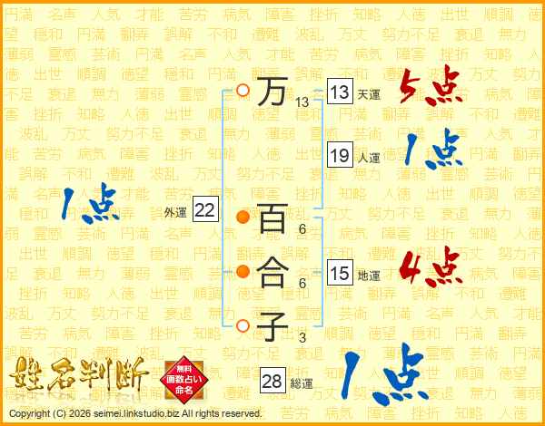万百合子さんの総運は28画の1点!