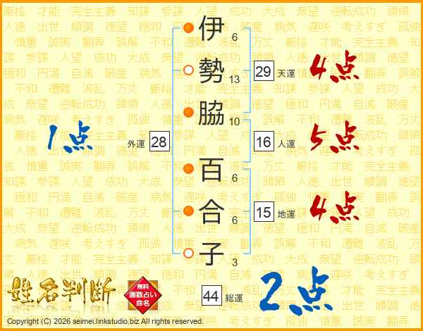 伊勢脇百合子さんの総運は44画の2点!