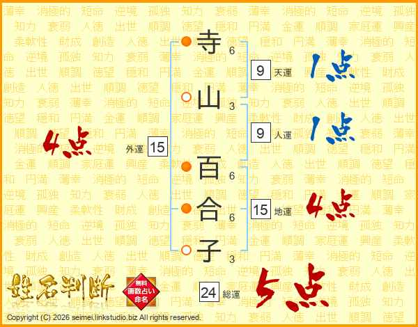 寺山百合子さんの総運は24画の5点!