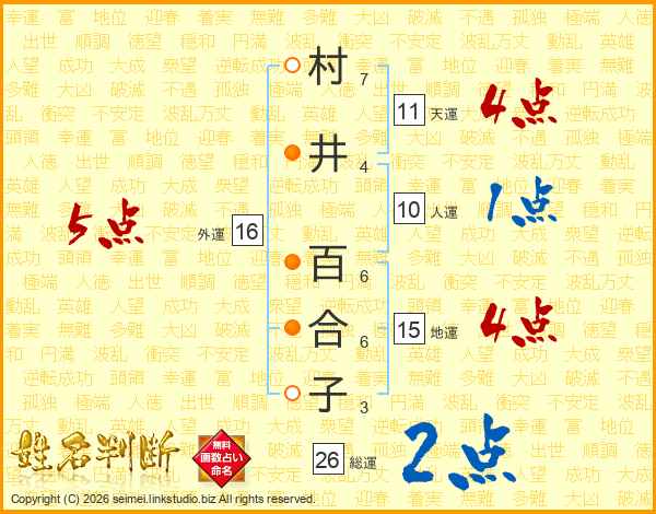 村(7画)井(4画) 百(6画)合(6画)子(3画)