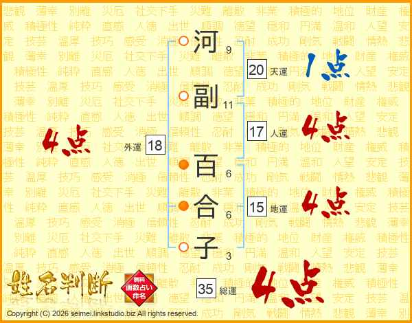 河副百合子さんの総運は35画の4点!