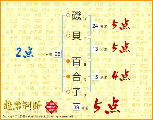 磯(17画)貝(7画) 百(6画)合(6画)子(3画)