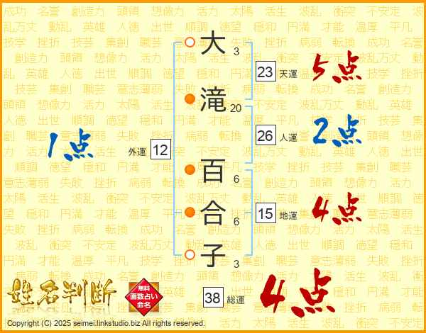 大滝百合子さんの総運は38画の4点!