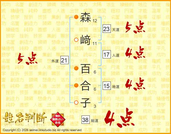 森(12画)﨑(11画) 百(6画)合(6画)子(3画)