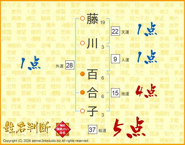 藤(19画)川(3画) 百(6画)合(6画)子(3画)
