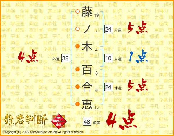 藤ノ木百合恵さんの総運は48画の4点!