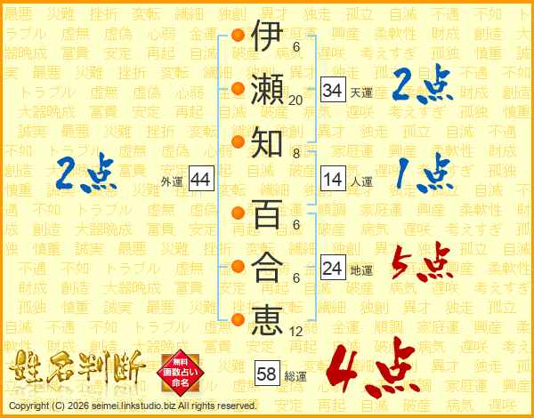 伊瀬知百合恵さんの外運は44画の2点!