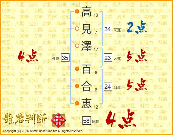 高見澤百合恵さんの外運は35画の4点!