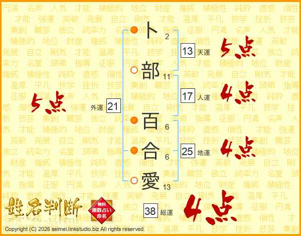 卜(2画)部(11画) 百(6画)合(6画)愛(13画)