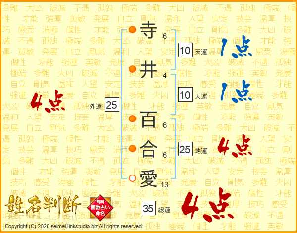 寺井百合愛さんの総運は35画の4点!