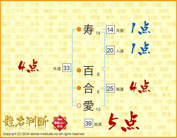 寿百合愛さんの総運は39画の5点!