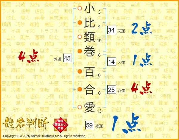 小比類巻百合愛さんの総運は59画の1点!
