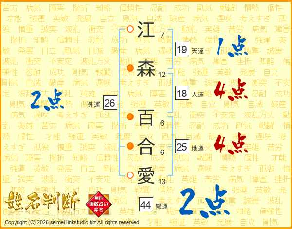 江森百合愛さんの総運は44画の2点!