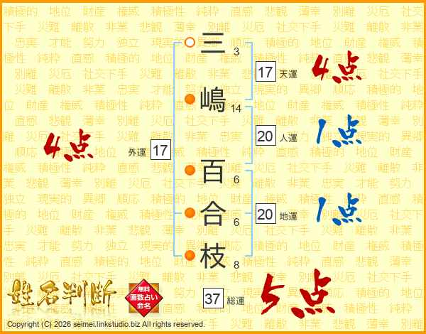 三嶋百合枝さんの総運は37画の5点!
