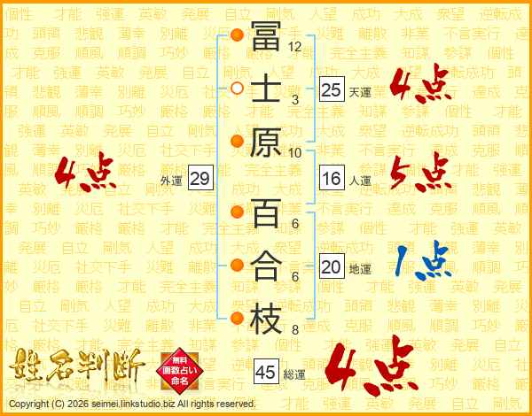 冨(12画)士(3画)原(10画) 百(6画)合(6画)枝(8画)