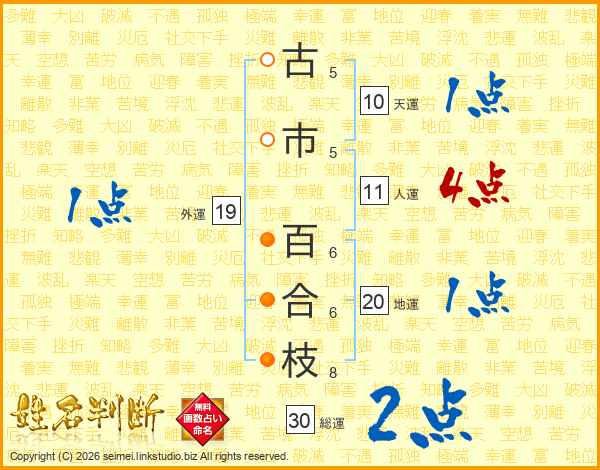 古市百合枝さんの人運は11画の4点!