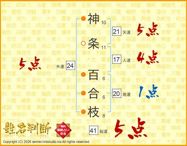 神条百合枝さんの総運は41画の5点!