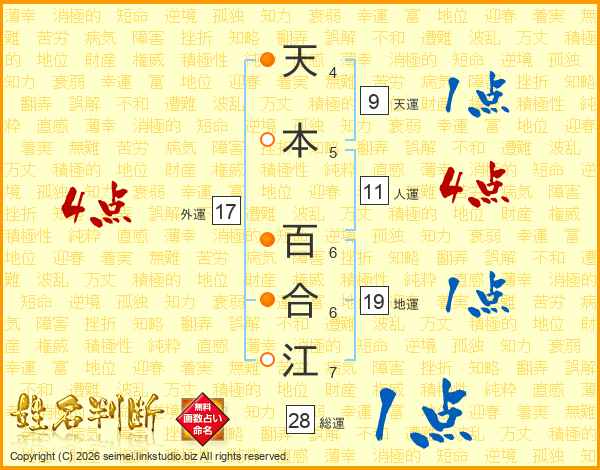 天本百合江さんの人運は11画の4点!