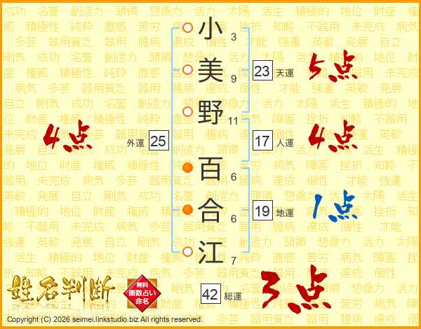 小美野百合江さんの天運は23画の5点!