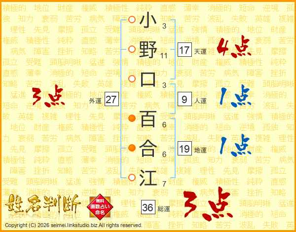 小野口百合江さんの総運は36画の3点!