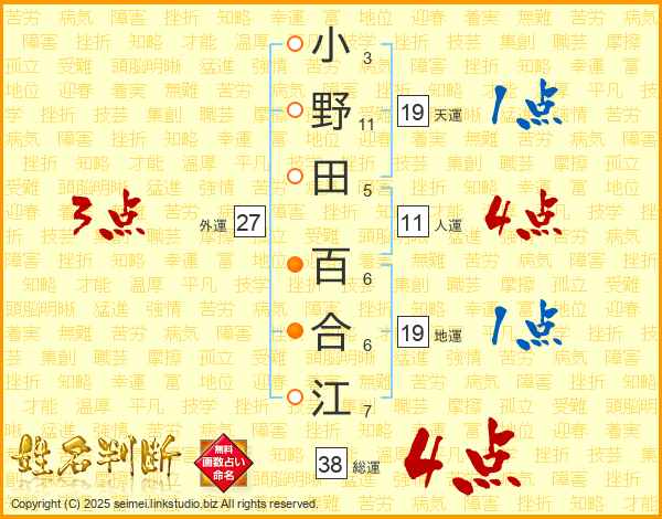 小(3画)野(11画)田(5画) 百(6画)合(6画)江(7画)