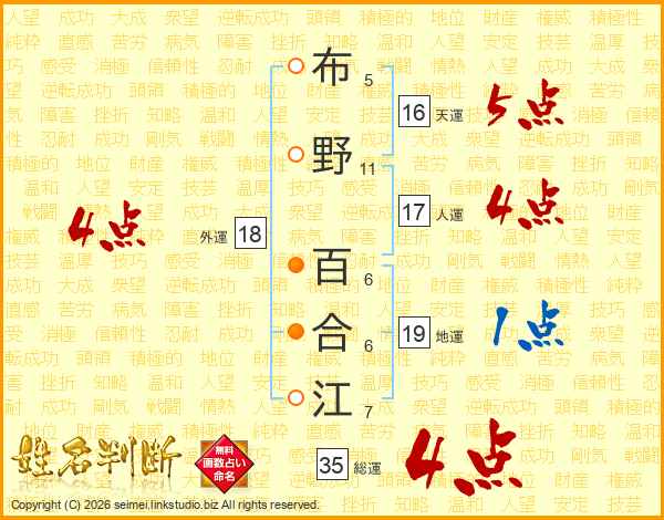 布野百合江さんの総運は35画の4点!