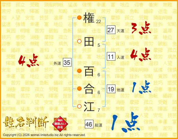 権田百合江さんの天運は27画の3点!