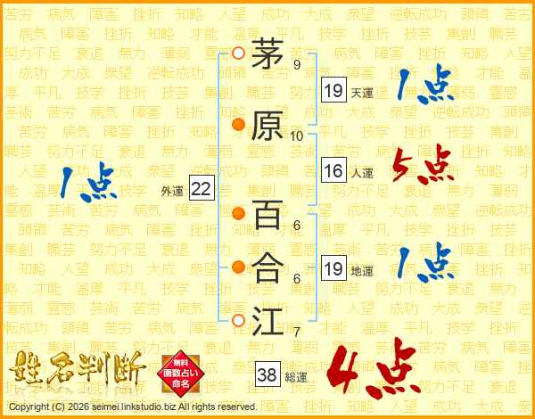 茅原百合江さんの総運は38画の4点!