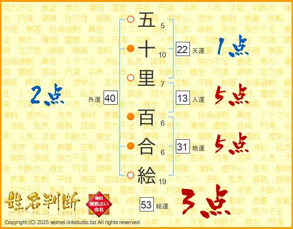 五(5画)十(10画)里(7画) 百(6画)合(6画)絵(19画)