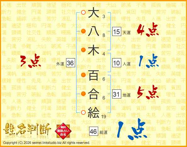 大八木百合絵さんの総運は46画の1点!
