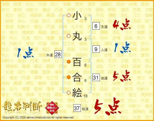 小丸百合絵さんの総運は37画の5点!