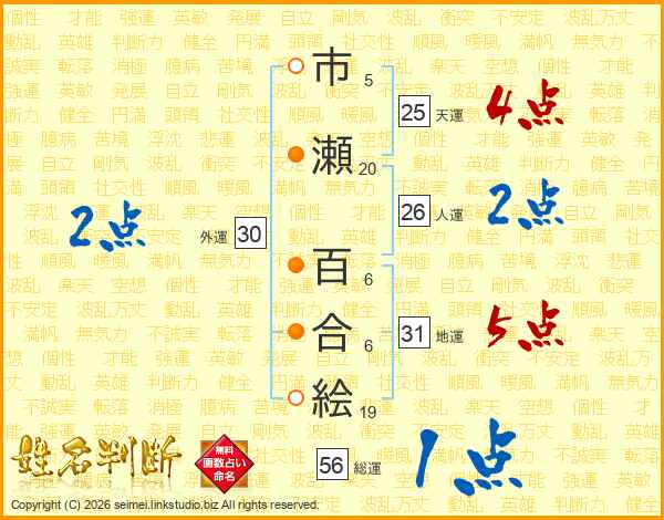 市瀬百合絵さんの人運は26画の2点!