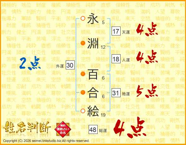 永淵百合絵さんの総運は48画の4点!