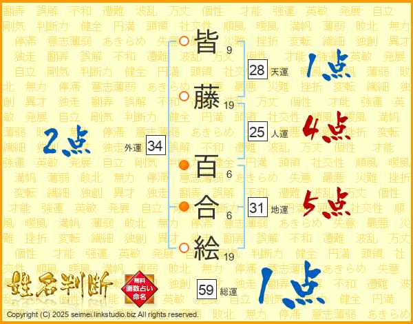 皆藤百合絵さんの総運は59画の1点!