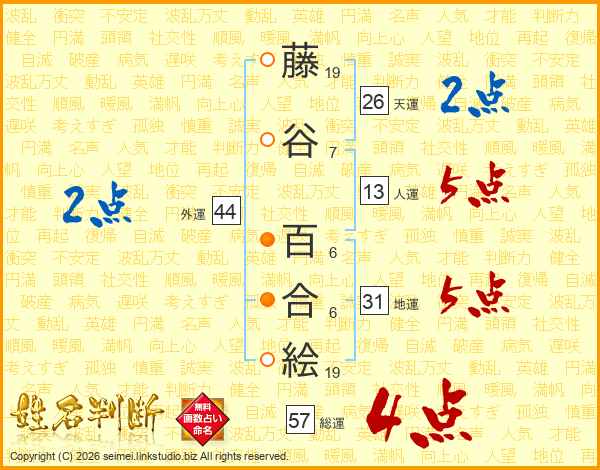 藤谷百合絵さんの天運は26画の2点!