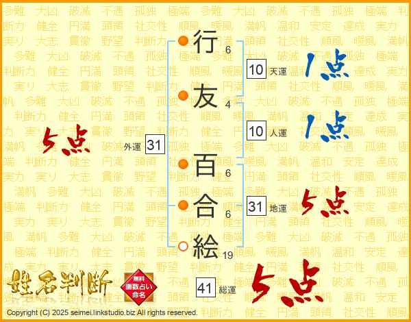 行(6画)友(4画) 百(6画)合(6画)絵(19画)